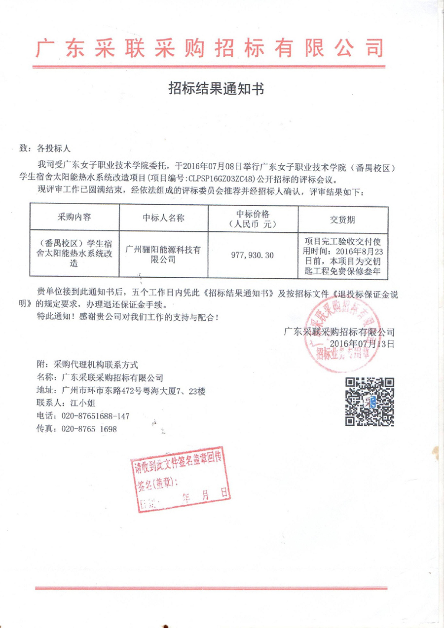 廣東女子職業技術學院學生宿舍太陽能熱水系統改造項目
